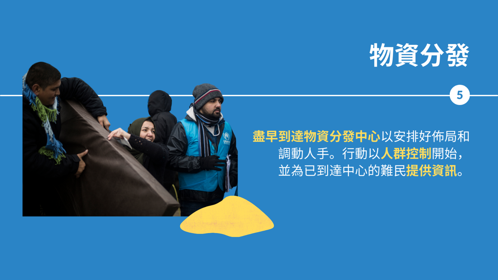 為了讓難民能在衝突爆發後的72小時內得到即時支援,聯合國難民署會採取一系列行動,讓救援物資能盡快交到難民手中。