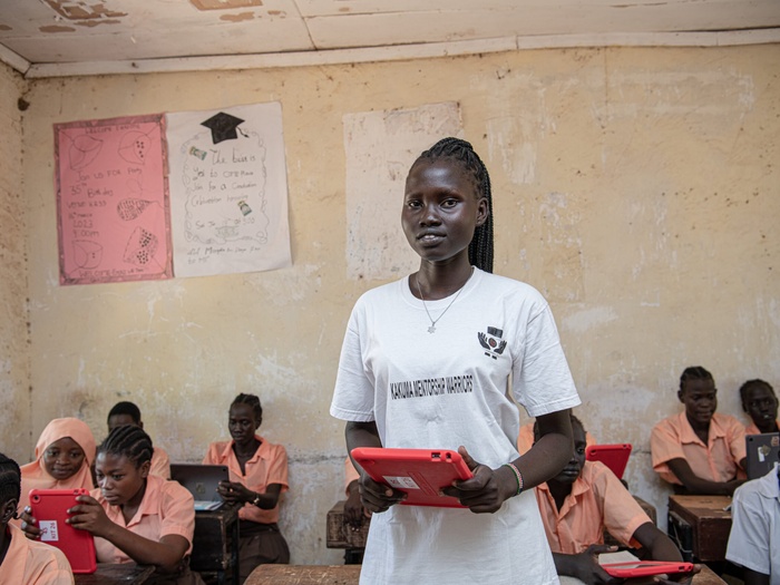"I started school here in the camp; back then, we only had one textbook that we had to share with 20 others. Today, I'm glad to see that girls now have access to digital tools that can help them think outside the box.”