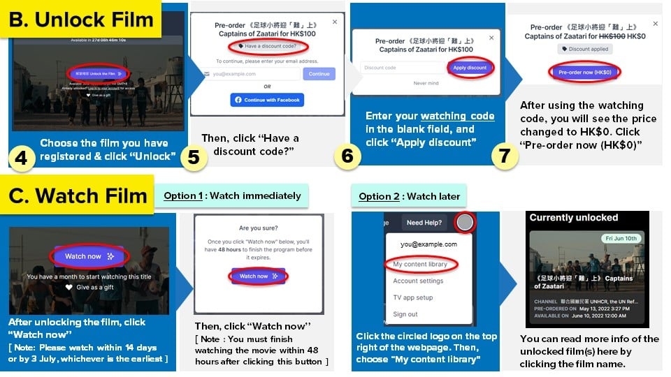 For online screenings, you may first choose your preferred movie at www.unhcr.org/hk/en/film, and then donate a minimum of HK$100 to redeem an online movie ticket. If you wish to redeem an online movie pass for accessing to all the films and short videos, please visit the designated donation page for a minimum donation of HK$350.