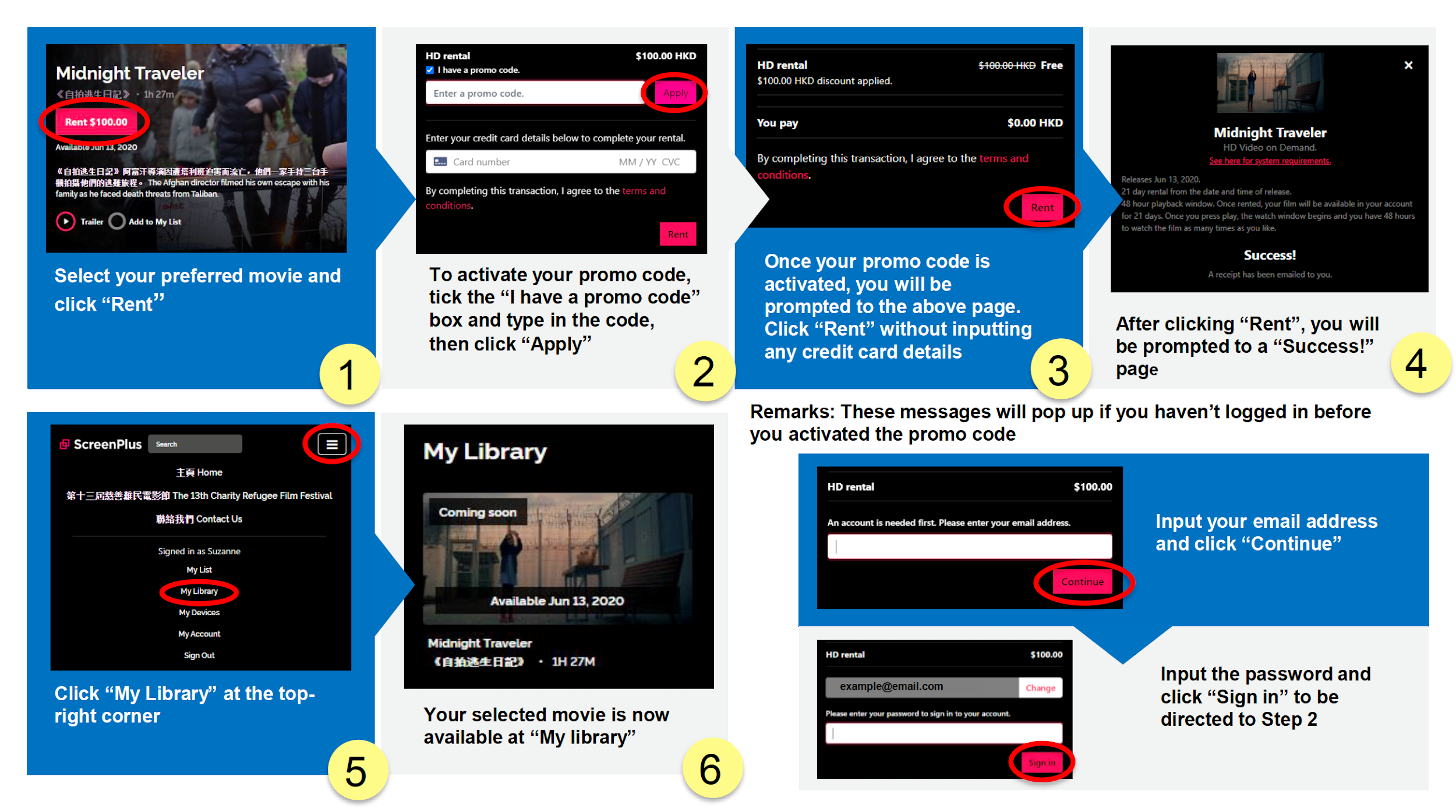 After registering on www.refugeefilm.hk, you may follow the instructions as listed below:
