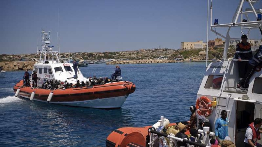 Italian coastguard vessels arrive at Lampedusa Island after rescuing people on the Mediterranean. © UNHCR/F.Noy
