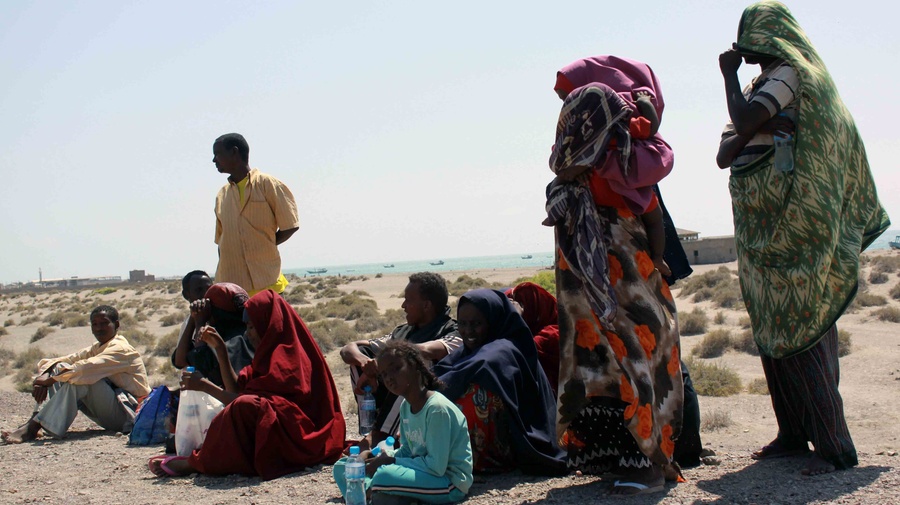 Somali refugees rest on the coast of Yemen after their gruelling sea journey from the Horn of Africa.