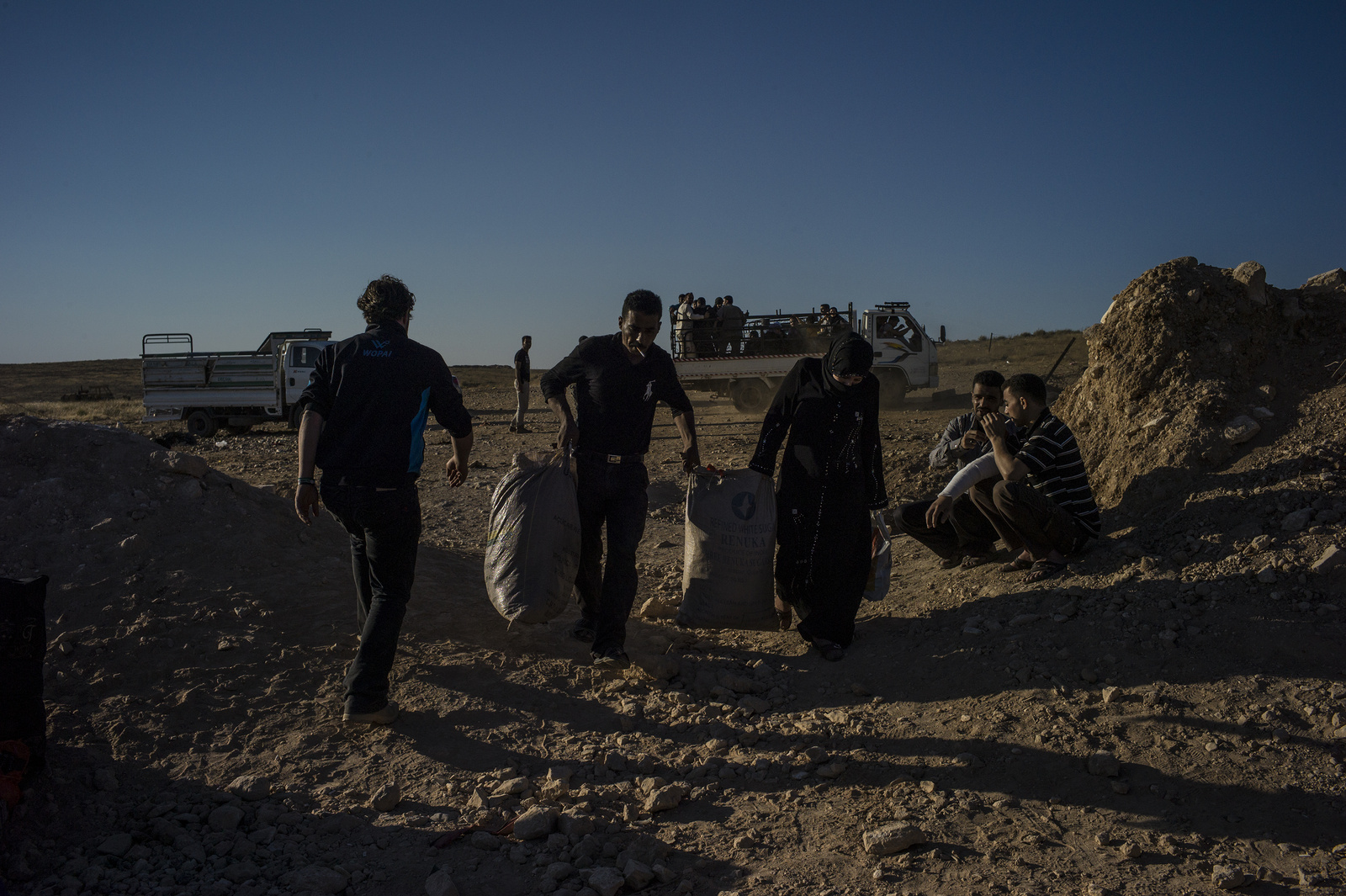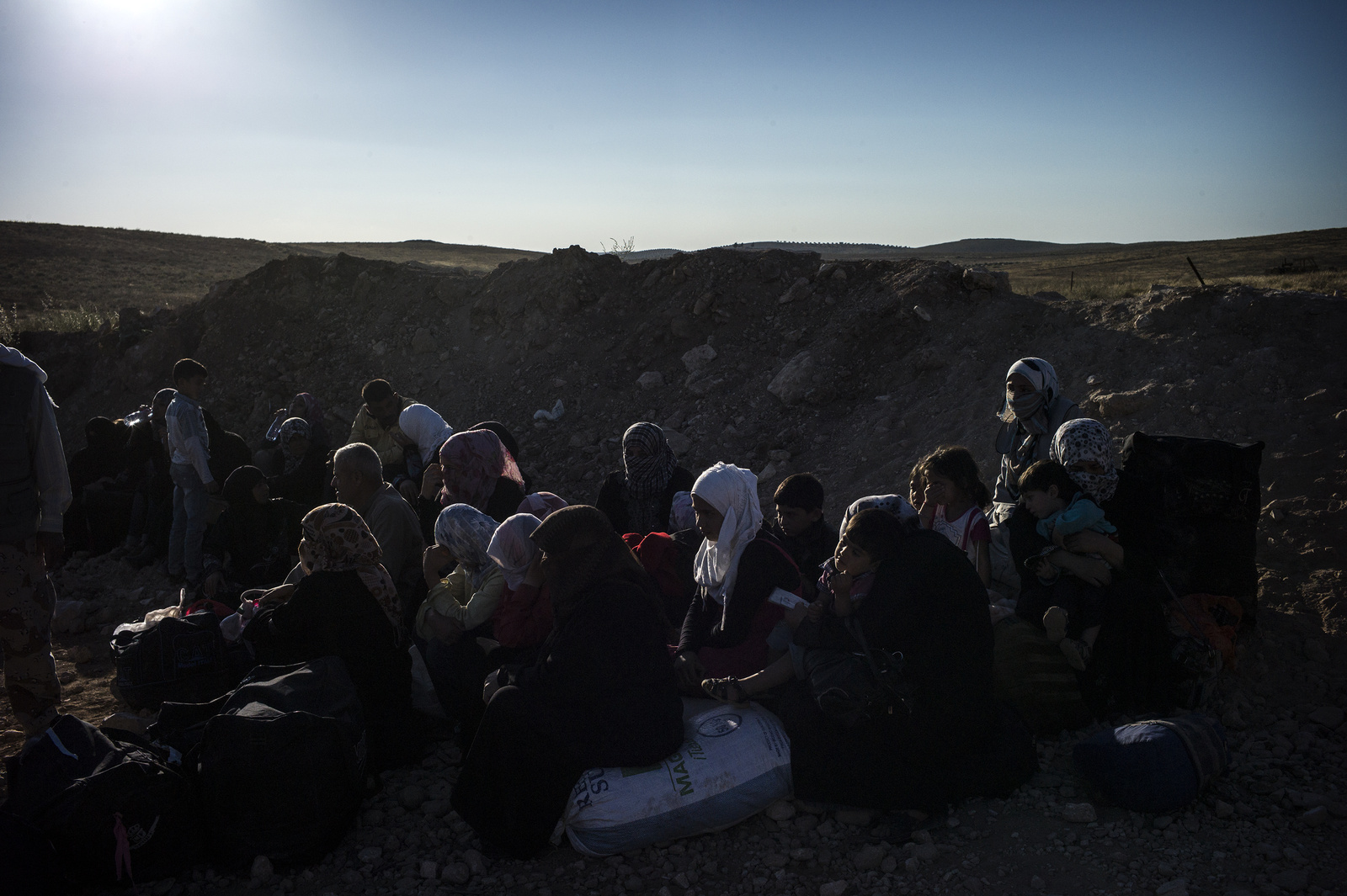 UNHCR Special Envoy Angelina Jolie records the stories of refugees who have just escaped the war in Syria at the Jaber border crossing in Jordan on 18 June.