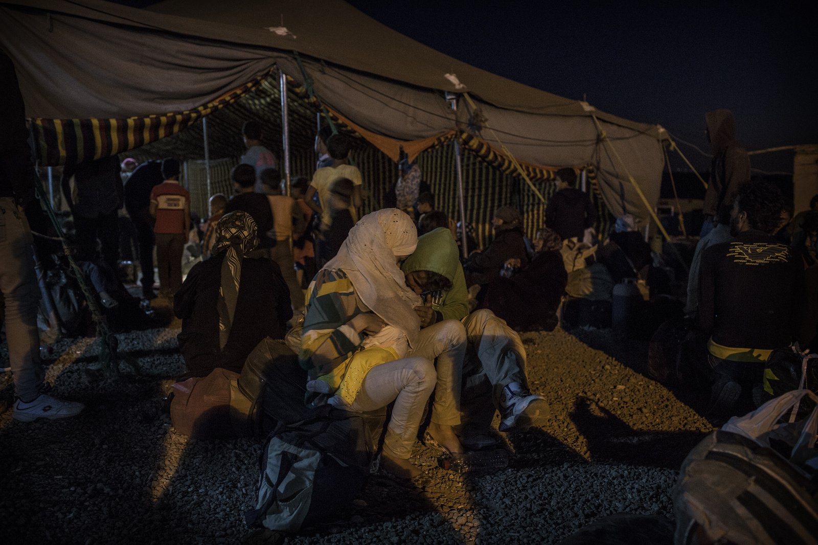 Jaber border crossing, Jordan--Along a dirt track on an unexpectedly cool and windy night on Jordan's border with Syria, as shadows lengthened across the barren hills, UNHCR Special Envoy Angelina Jolie listened to the stories of men women and children who had fled Syria just hours before. She heard stories of bombs and pain and loss from people fleeing Homs, Dara'a and Qusair, three of the communities devastated by the Syrian conflict. Ms. Jolie encouraged the refugees to tell her, and through her the world, of their ordeal. "We can't know your pain," Ms. Jolie said at one point, speaking to families who had lost their loved ones. But she listened.