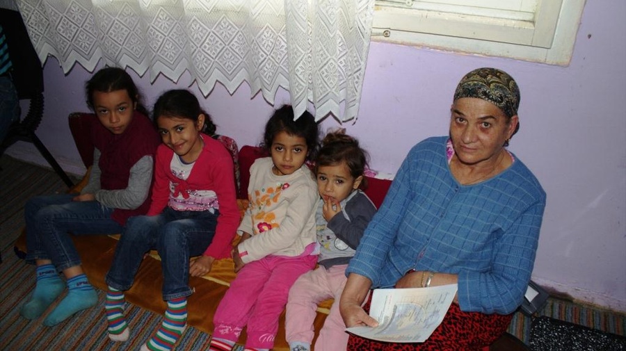 Arsen's mother sits with his children in their house in Gracanica, Kosovo, showing the birth certificates that make it possible for them to access assistance and register for school.