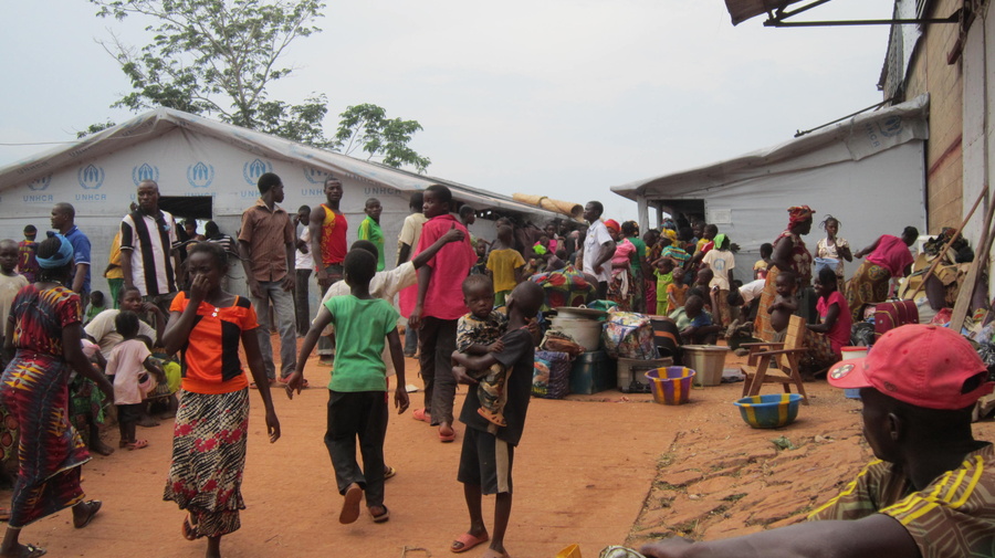 Newly arrived refugees from Central African Republic at a transit centre in northern Democratic Republic of the Congo.