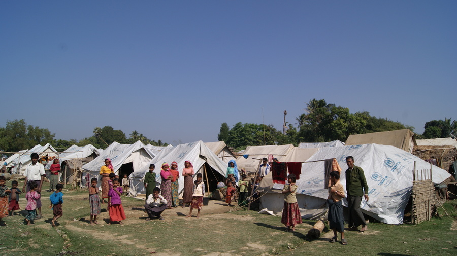 Displaced people in Khaung Doke Khar have been moved out of tents to nearby government shelters outside Sittwe, Rakhine state.