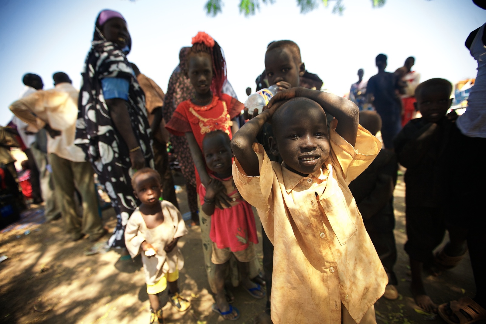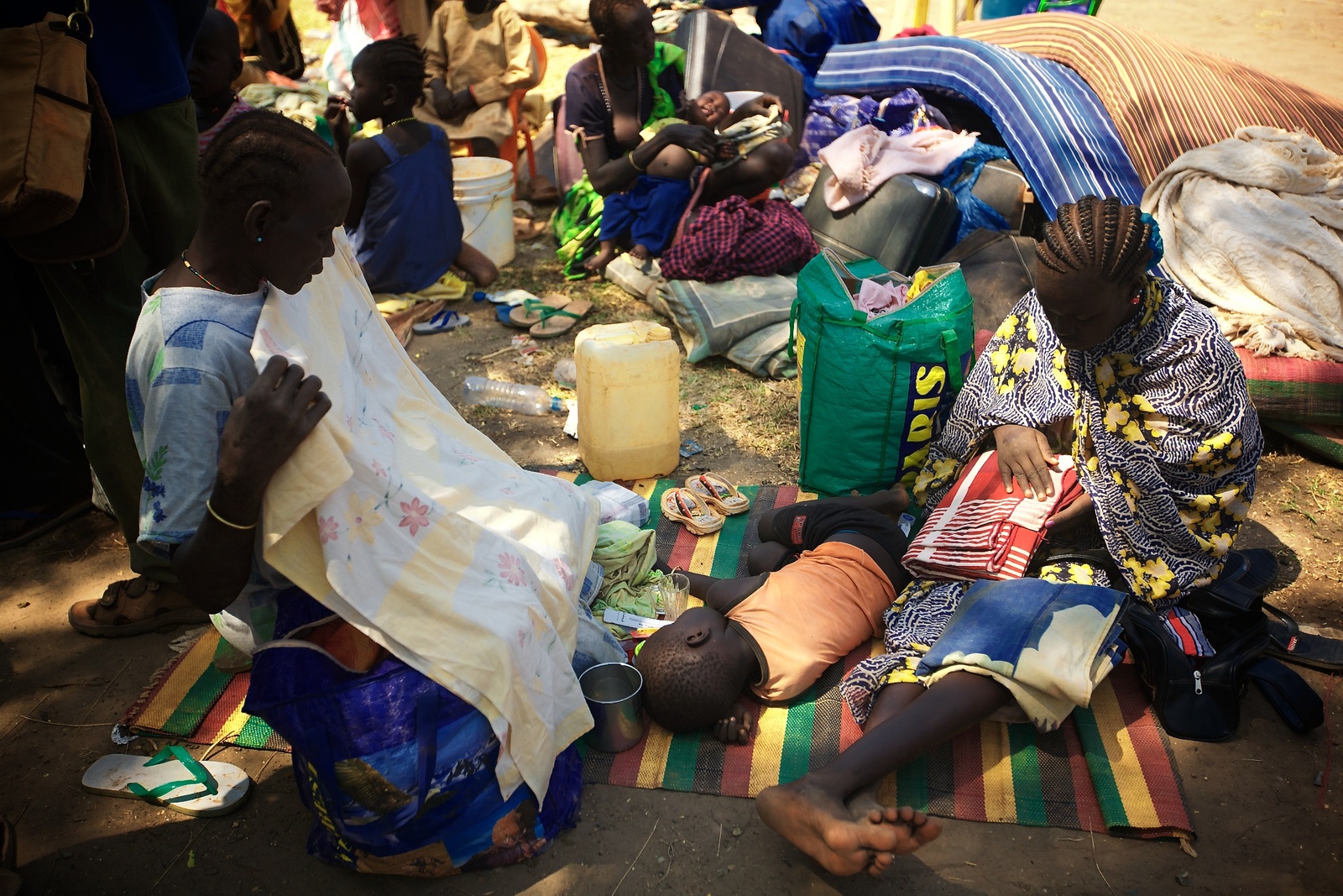 A mother and child in Malakal. People have come with everything they own, including mattresses, sofas, chairs, tables, cooking utensils, corrugated iron sheeting, radios, TV sets, fridges and small generators and cuddly toys.