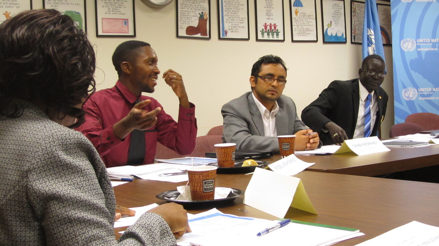 Fidel Nshombo (second from left) takes part in a meeting of the Refugee Congress Advisory Board in Washington, DC.