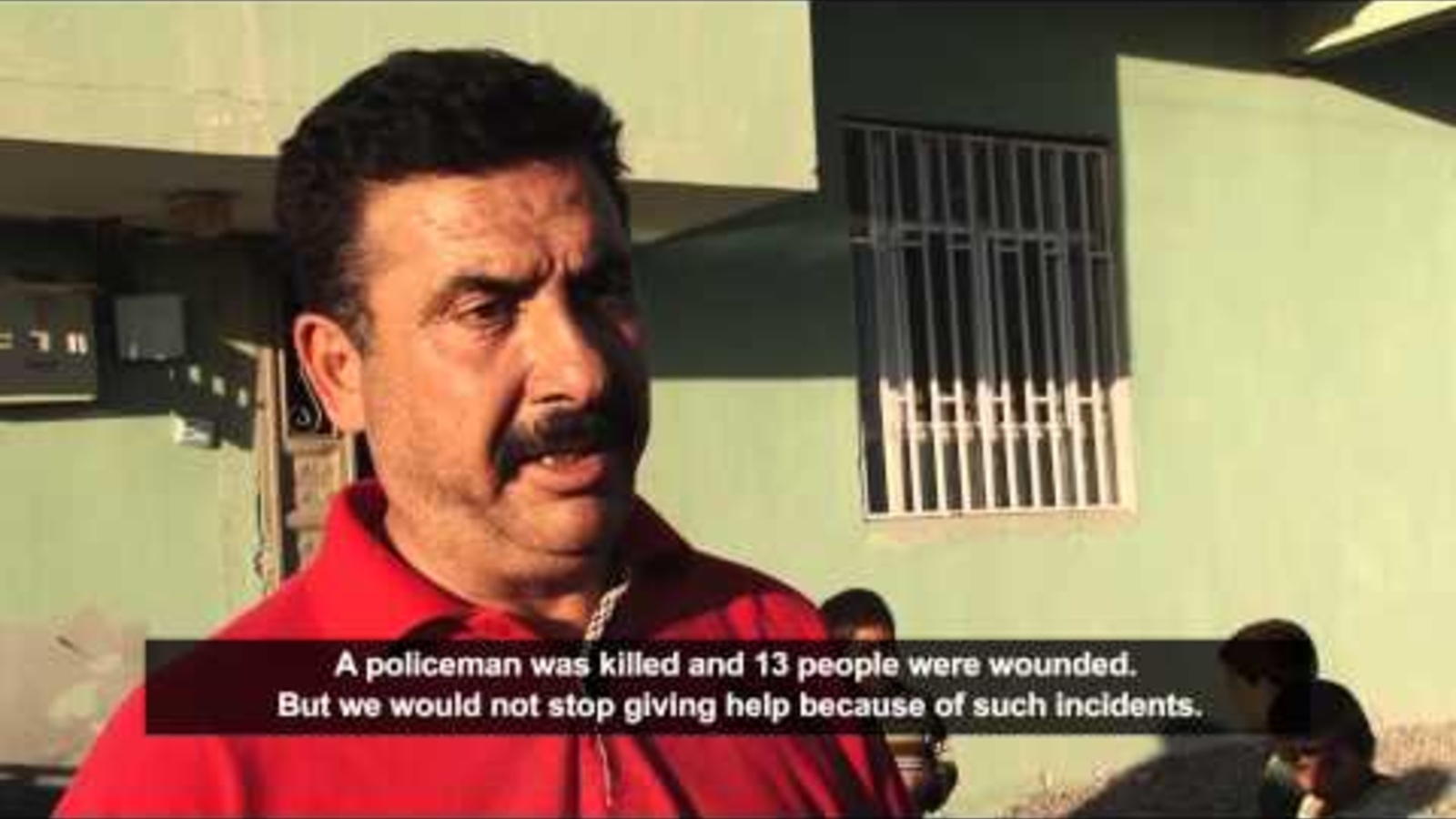 Mahmut first delivered aid right across the border, sometimes accompanying the precious cargo to the border crossing. Then it became too dangerous. "We were delivering assistance and someone [on the Syrian side] sprayed us with gunfire. I was wounded in the leg. One policeman was killed and 13 people were injured," he recalls. "But we would not stop offering help because of such incidents."