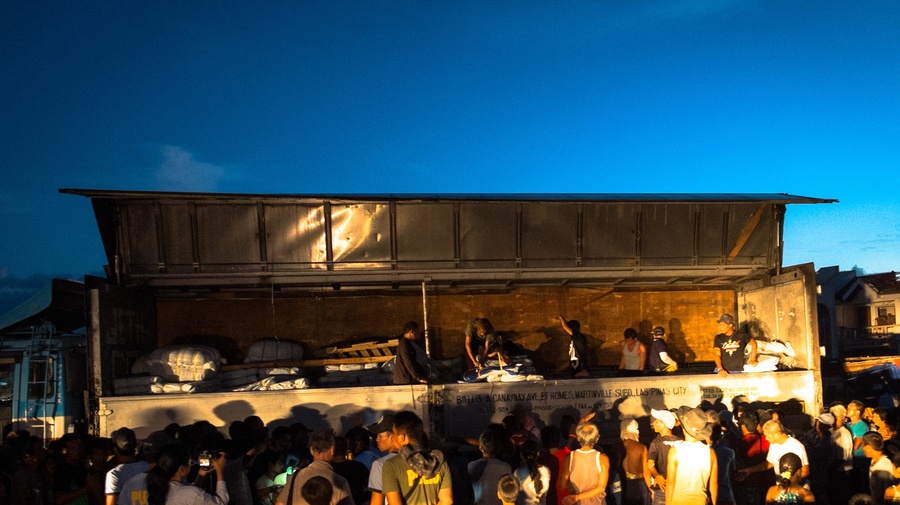 TACLOBAN CITY, Philippines, November 20 (UNHCR) - The aid was barely dry when it flew off the trucks. UNHCR's plastic sheets and blankets had just been offloaded in the rain from a cargo plane at the Tacloban airport and were immediately taken to San Jose, a nearby municipality flattened by Typhoon Haiyan.