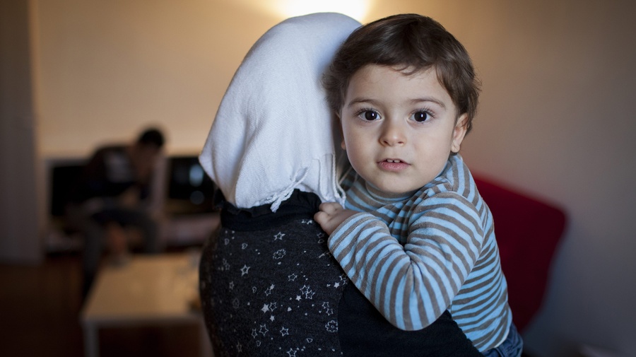 A young refugee with his mother in France. Many of the Syrians risking their lives to reach Italy, wish to travel on to other European Union countries.