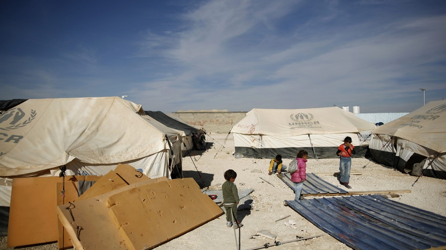 The needs are great for Syria's displaced people, including these children standing amid UNHCR tents at Jordan's Za'atri refugee camp on a brisk winter day.