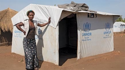 Upon arrival at the new settlements, refugees are able to spend the night in communal shelters at reception centres. After registration and the granting of asylum, refugees will be provided with plots of land in order to build their own shelters and conduct agricultural self-reliance activities. All new refugee arrivals receive emergency temporary shelter kits (tools and a plastic tarpaulin to be stretched over four poles with rope), which can be converted into semi-permanent grass-thatched shelter with mud brick walls.