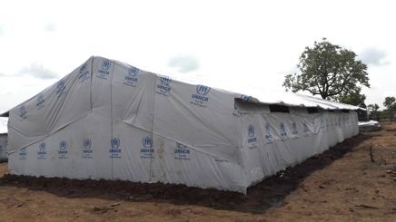 Upon arrival at the new settlements, refugees are able to spend the night in communal shelters at reception centres. After registration and the granting of asylum, refugees will be provided with plots of land in order to build their own shelters and conduct agricultural self-reliance activities. All new refugee arrivals receive emergency temporary shelter kits (tools and a plastic tarpaulin to be stretched over four poles with rope), which can be converted into semi-permanent grass-thatched shelter with mud brick walls.
