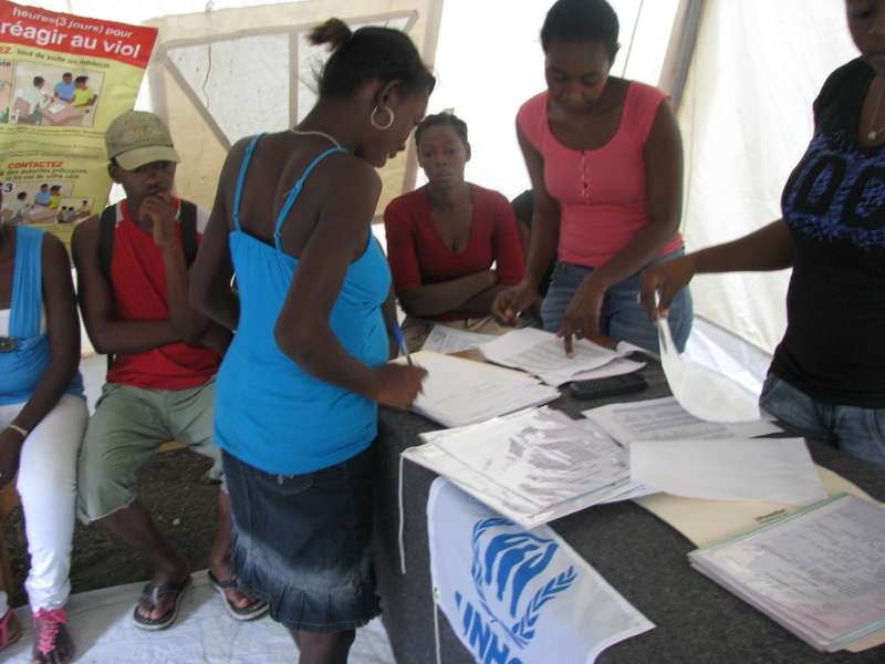 震後一年,估計仍有800,000人居住在超過1,000個於震後建成的營地內。在每天面對生存挑戰的情況下,補領出生證明或身分證被置於次要位置。