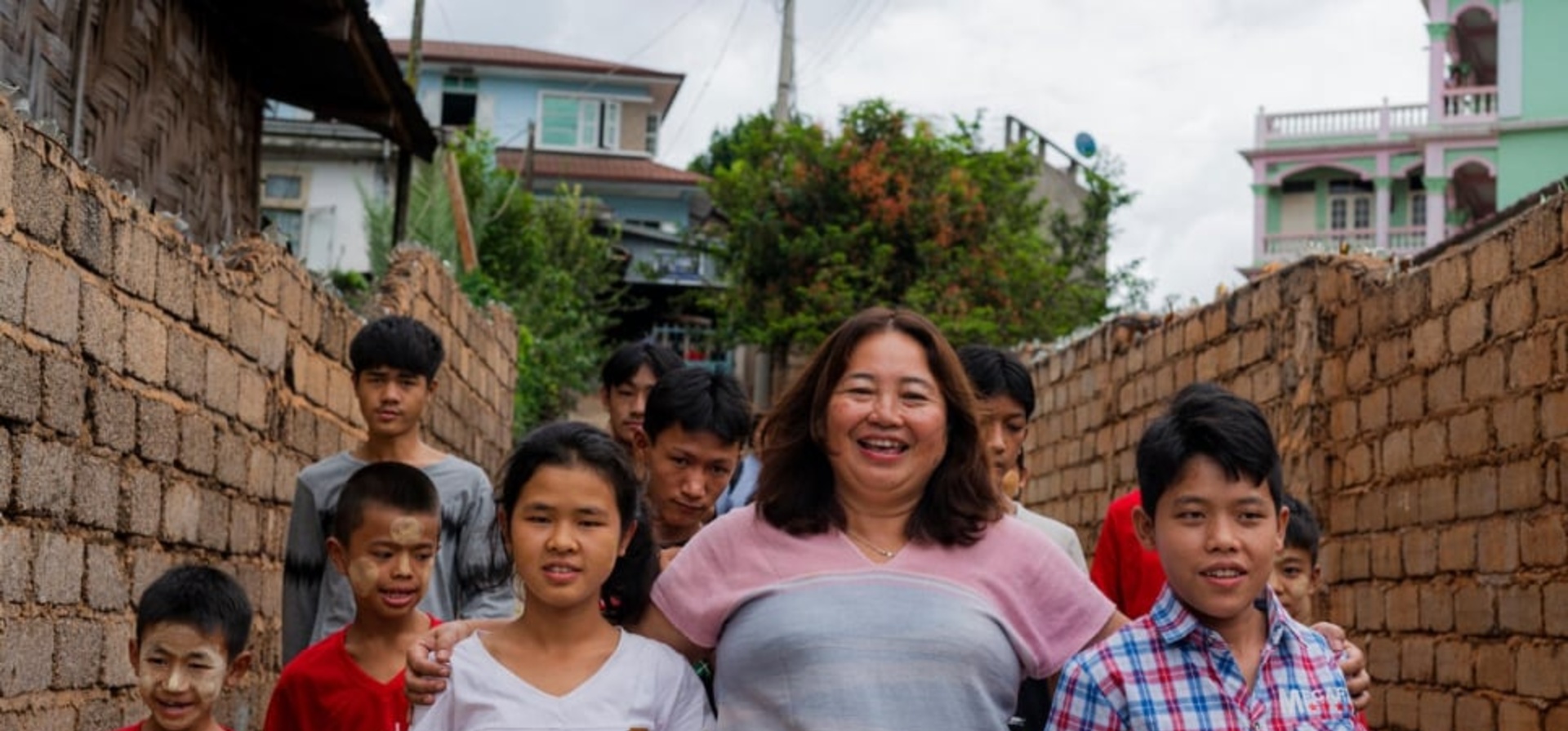 54歲的Naw Bway Khu 探訪位於緬甸北部撣邦最大的市鎮臘戎、專門收容愛滋病患者的Metta May May Shelter,受到熱烈的歡迎