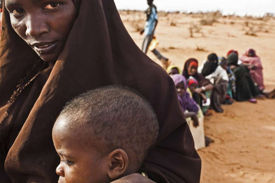 • 於肯亞的達達阿布(Dadaab)的Ifo難民營裡,索馬利亞難民正於接待中心外排隊等候著。