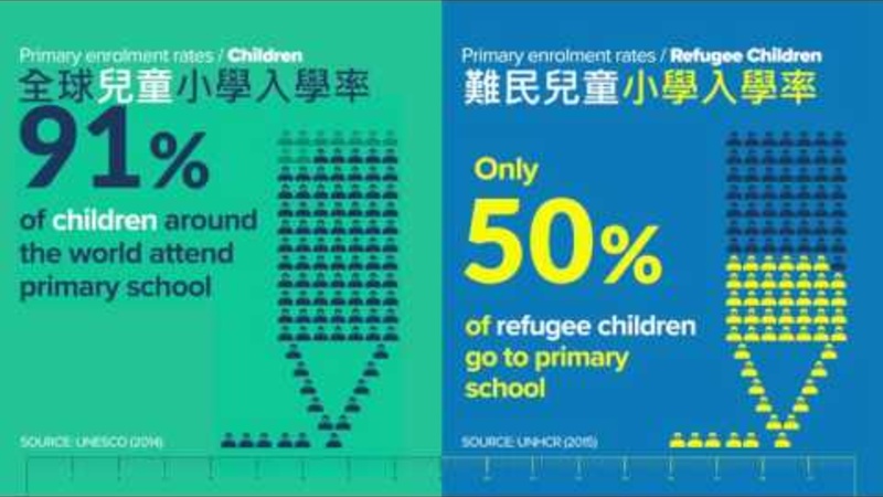 聯合國難民署的數據指出,在我們庇護下的600萬適齡學童中,超過一半── 約370萬人無法上學。