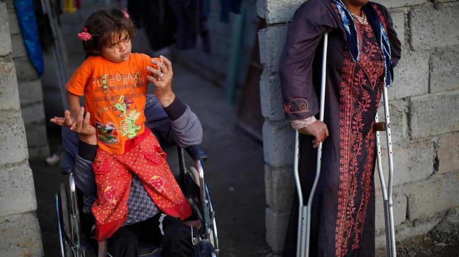 Domiz難民營,伊拉克,11月28日(聯合國難民署)– 對逃離家園的敘利亞人來說,越過邊界無疑是艱難的旅程,尤其是有特別需要的難民:例如44歲的Azad與30歲的妻子Maha,兩人年紀尚輕時已經患上小兒麻痺症。