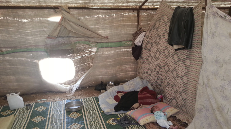 一名嬰兒在Hasiya一個為敍利亞國內流離失所家庭所搭建的帳篷中休息。那裡的兒童需要面對很多健康問題。© UNHCR/A.Blazy