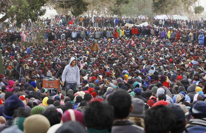 週四,在突尼斯的Choucha營地,當一群群孟加拉人對營地發洩不滿時,這種挫折感升級形成了憤怒。抗議活動最終以群眾高舉一個人,從主大路走到邊境的一種儀式達到高潮。抗議者呼籲政府帶他們回家,並要求獲得食物。