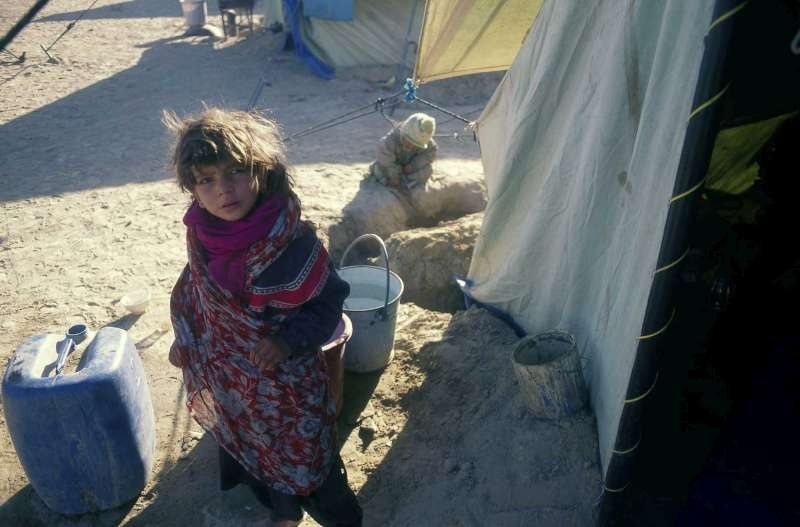 從我家走過一條街有一所難民醫院,有時我會和祖母一起往那兒。絕望的母親身旁坐著由頭到腳都纏著白布的子女,白布條還滲著紅斑斑的鮮血。我問祖母這些斷了肢臂的小孩可否也是panahgazeen。她告訴我,「是的,他們國家發生戰爭。戰機向他們的家擲炸彈。」