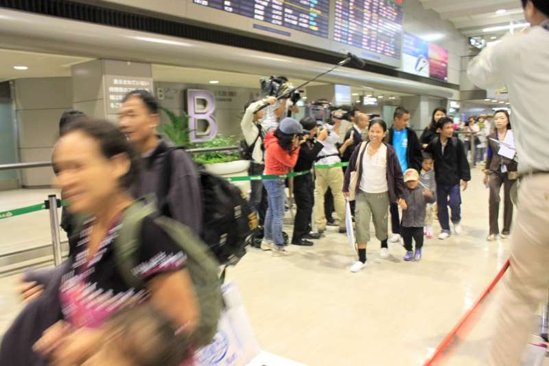 這些來自緬甸的難民家庭包括有三對夫婦和他們的12名年齡由1歲至15歲的子女。他們從曼谷乘了六小時的夜機來到東京﹐他們全部都是第一次乘搭飛機的。