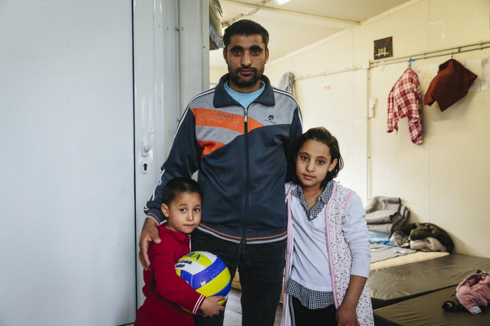 Tražitelj azila iz Afganistana s dvoje djece u prihvatnom centru u Fylakiju, Grčka, u veljači 2020. © UNHCR/Achilleas Zavallis