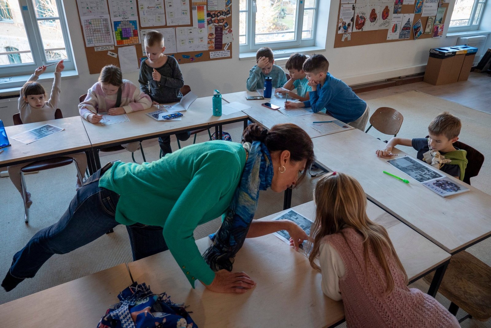 „Nincs meghatározott órarend, spontán alakul a tanítás” – magyarázza Olesia. – „Keverjük a komoly oktatást és a szórakozást, és van kézműveskedés és testnevelés is.”