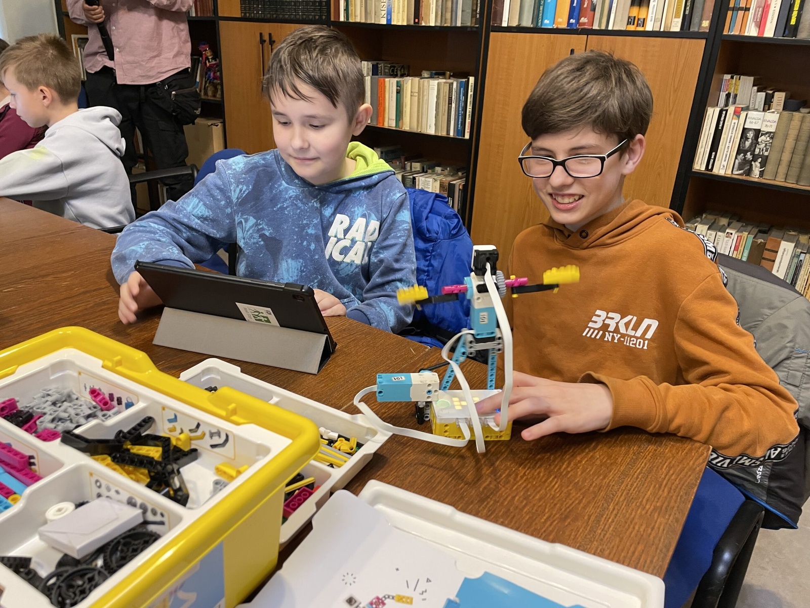 Az ukrán nyelvű csoportban a gyerekek Lego robotépítő készletekből dolgoznak. A 12 éves Roma a Kijevhez közeli Fasztivből és a 10 éves Ljosa a Harkivtől délre fekvő poltavai régióból mindketten a háború első heteiben érkeztek menekültként Budapestre. Egy vidéki kiránduláson barátkoztak össze, most pedig már egymás mellett ülnek, hogy megépítsék a robotjukat, amelyik, amint a tabletjükön keresztül működésbe hozzák, látványos breakdancbe kezd. „Szuper, hogy ilyen vicces dolgokat csinálhatunk” – mondja Ljosa.