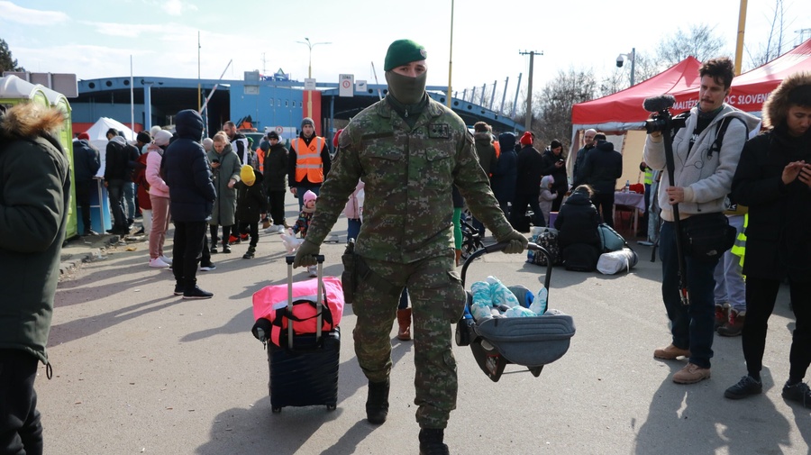 Ukrainian refugees arriving in Slovakia at the Vysné Nemecke border crossing point