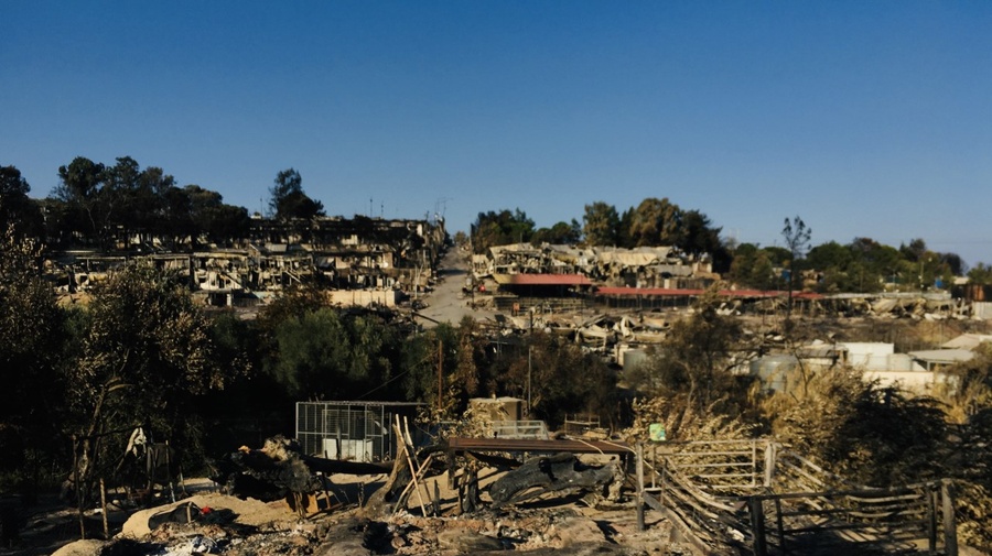 A Moria Befogadó és Azonosító Központ egyik leégett része a szigeten a szeptember 8. és 10. közötti tűzeseteket követően. © UNHCR