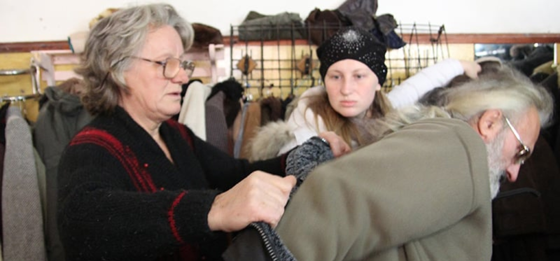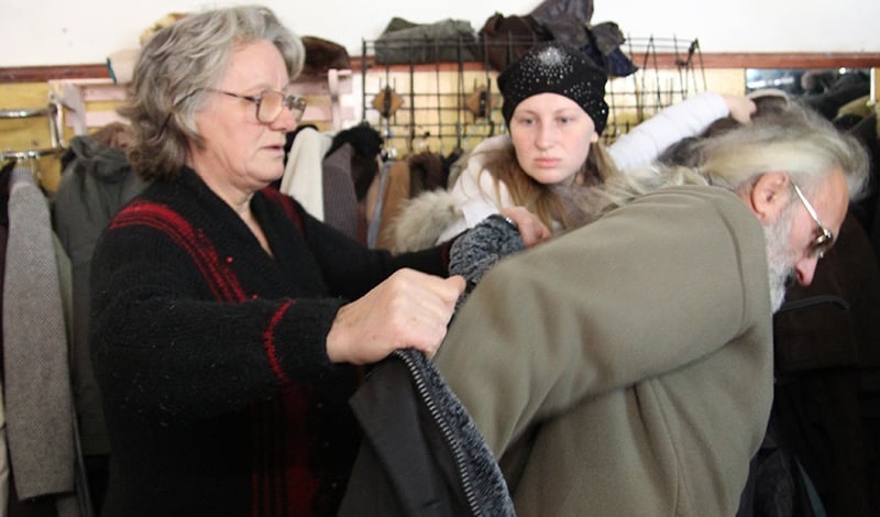 HARKIV, 2015. február 13. (UNHCR) – Egy szobában, amelyben szinte a mennyezetig állnak halomban a különféle ruhadarabok, egy ősz szakállas és lófarkas férfi télikabátokat próbál. Az ötvenes évei elején járó, építészmérnök és grafikus végzettségű Gennagyijnak égető szüksége van meleg holmira, miután sikerült elmenekülnie a kelet-ukrajnai Luhanszk városából, és pusztán azokban a nyári ruhadarabokban érkezett meg a fagyos Harkivba, amelyeket akkor viselt, amikor tavaly augusztusban hosszú hetekre foglyul ejtették.