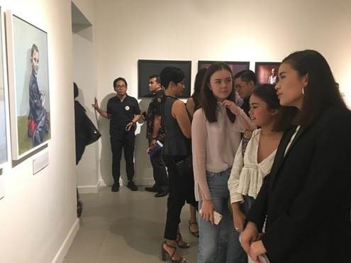 Pencinta seni datang ke acara pembukaan di Galeri Nasional Indonesia. © UNHCR/M. Suryono