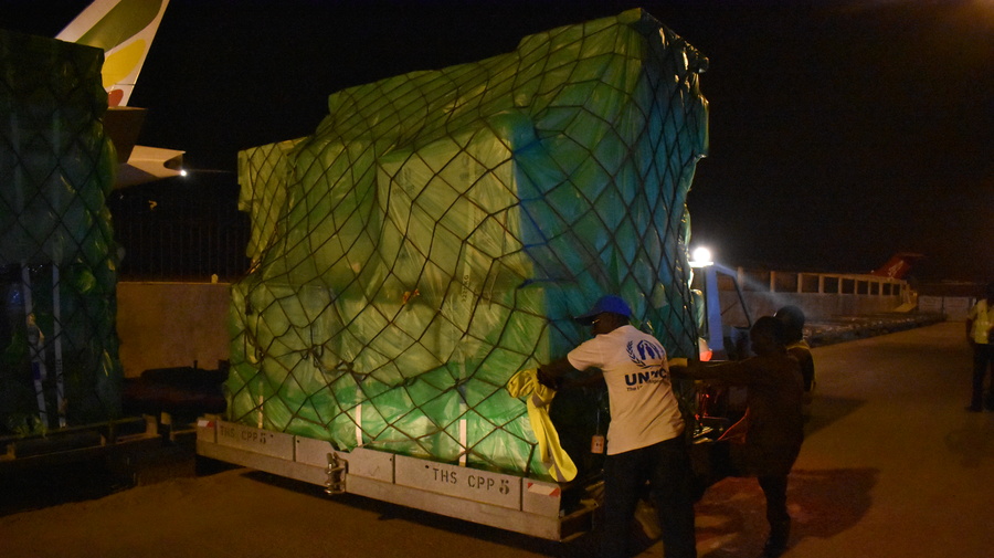 Yesterday’s airlift included 10,000 blankets, 12,000 jerry cans, 12,000 mosquito nets, 10,640 plastic buckets, 6,000 kitchen sets, 4,000 sleeping mats, 2,000 solar lamps and 2,000 plastic sheets, in addition to one ambulance vehicle. These emergency relief items are expected to respond to the humanitarian needs of some 10,000 refugees.