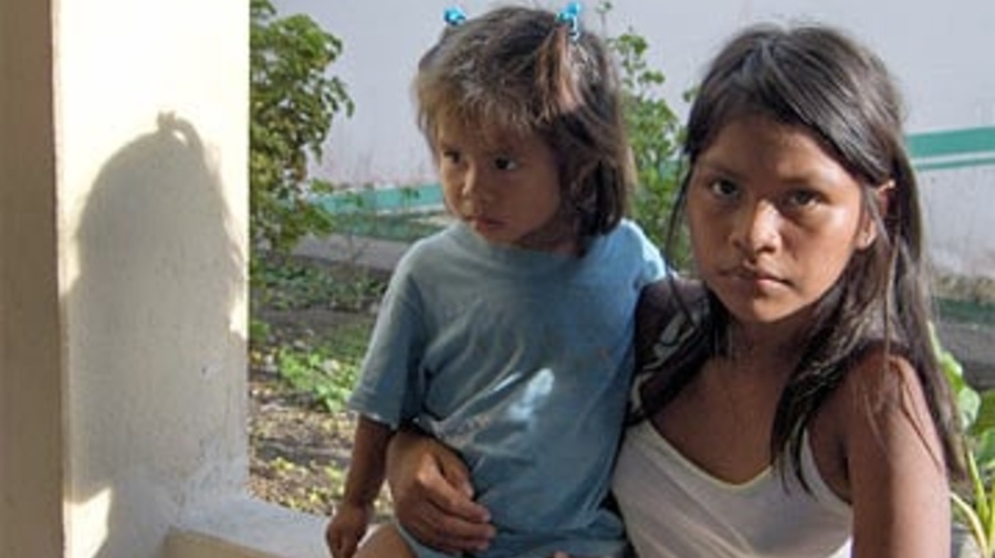 Two Kechwa girls who recently fled renewed violence in Colombia, at the UNHCR shelter in Lago Agrio, Ecuador.