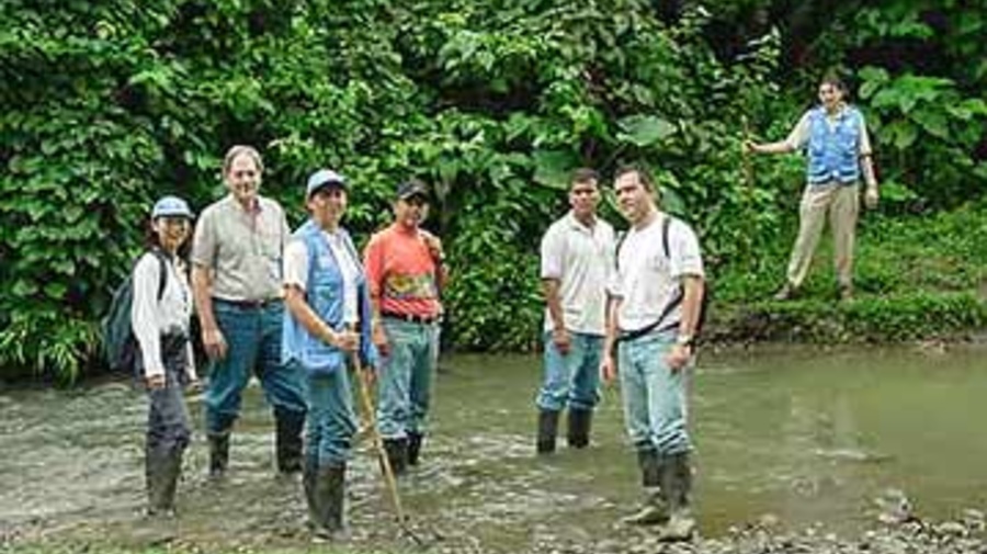 The UNHCR team wading through swamps to get the indigenous settlement of Las Playas in north-western Colombia.