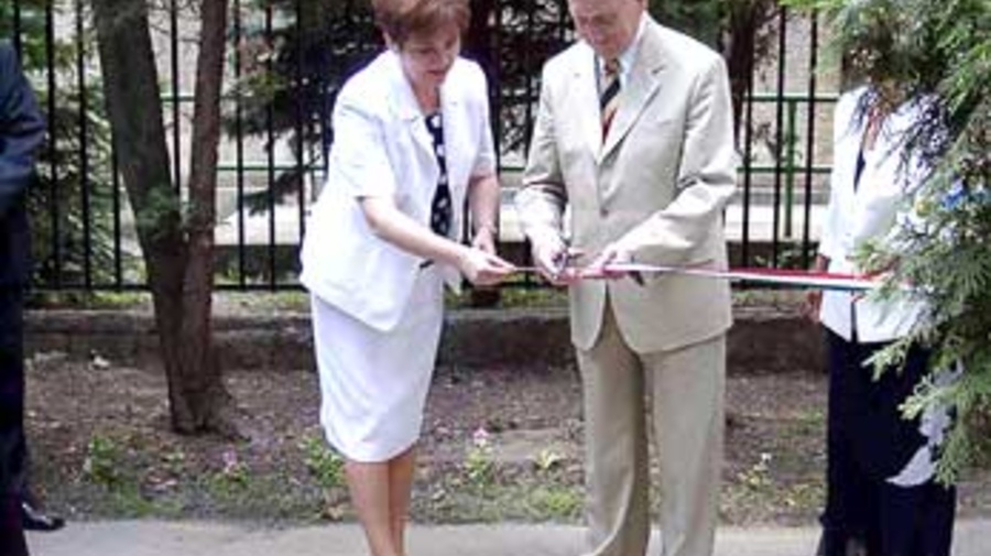 Hungary's president, Ferenc Madl, and interior minister Monika Lamperth open a centre for young asylum seekers.