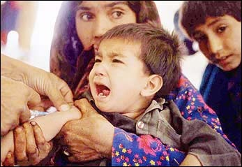 But the most animated area is the vaccination tents, where unsuspecting children enter and are jabbed with a polio and measles immunisation. They leave screaming, unleashing a wave of tears. With megaphones and frantic gestures, UNHCR staff get the group of burqas back in line because, now that they have been tipped off, they are trying to escape and keep their children from getting injected.