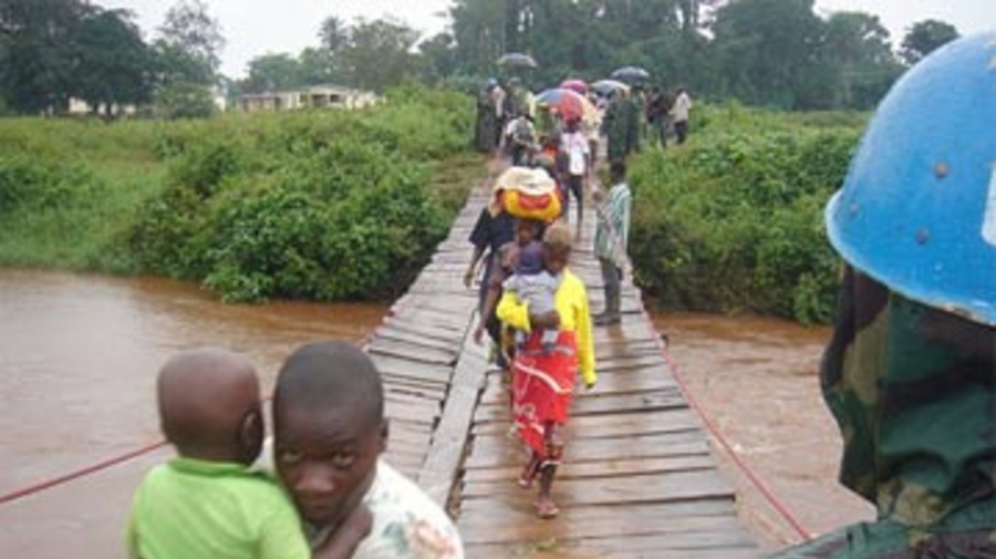 The Liberian refugees cross the Nihon River separating Côte d'Ivoire and their homeland.
