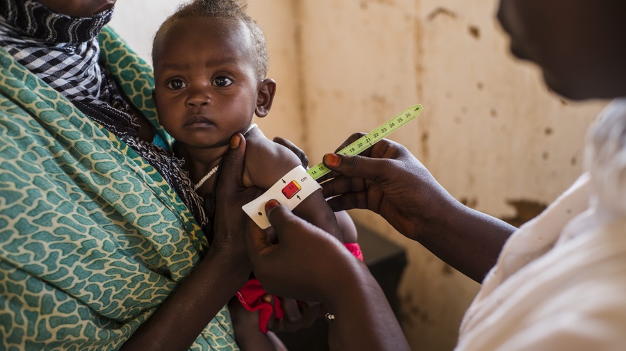 A young Sudanese refugee's arm is measured at the nutrition centre in Iridimi refugee camp, Chad. The malnutrition rate in Iridimi camp for children aged under five is 13.7 per cent.