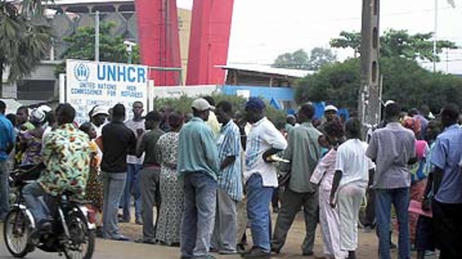 Togolese refugees waiting to be registered at the UNHCR office in Cotonou, Benin.