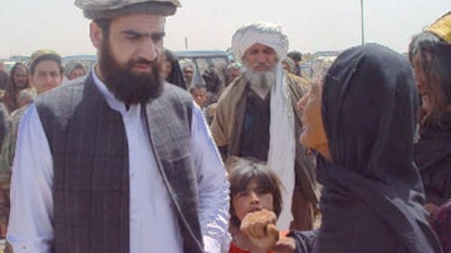 An official from the Afghan Ministry of Reconstruction and Rural Development during a recent visit to Mukhtar camp in southern Afghanistan.