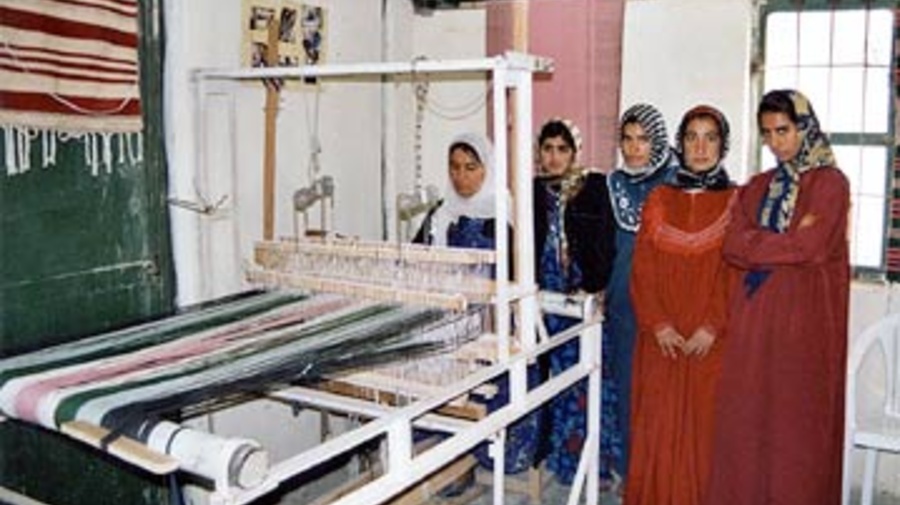 Iranian Kurd women learning to weave at Iraq's Al Tash refugee camp, which has since been caught up in fighting.