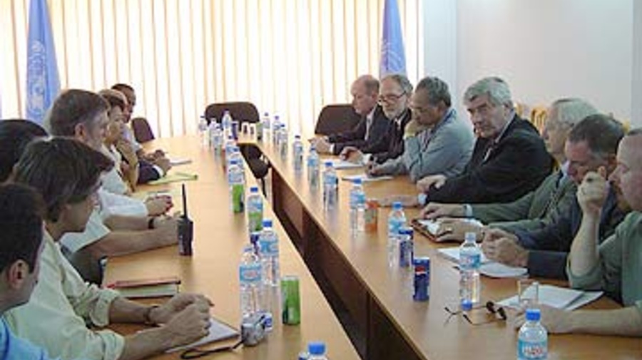 High Commissioner Ruud Lubbers (centre right) meets officials from various U.N. agencies in the northern Iraq city of Sulaymaniyah on Friday.