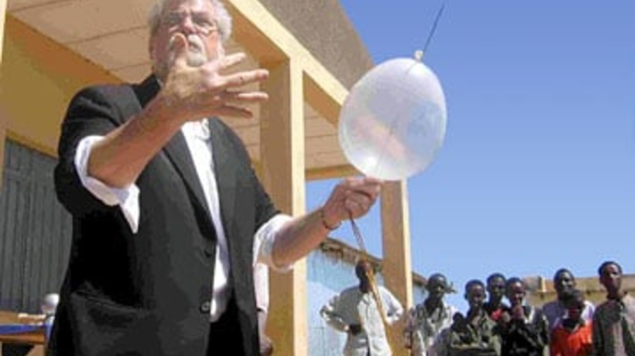 Verner and his partner Janet Fredericks, playing the clown La Fleur, amazed the Somali refugees with tricks using balloons and bubbles, vanishing silk scarves and the linking and unlinking of solid steel rings. But the emergence of the rainbow ribbon changed the mood of the audience.
