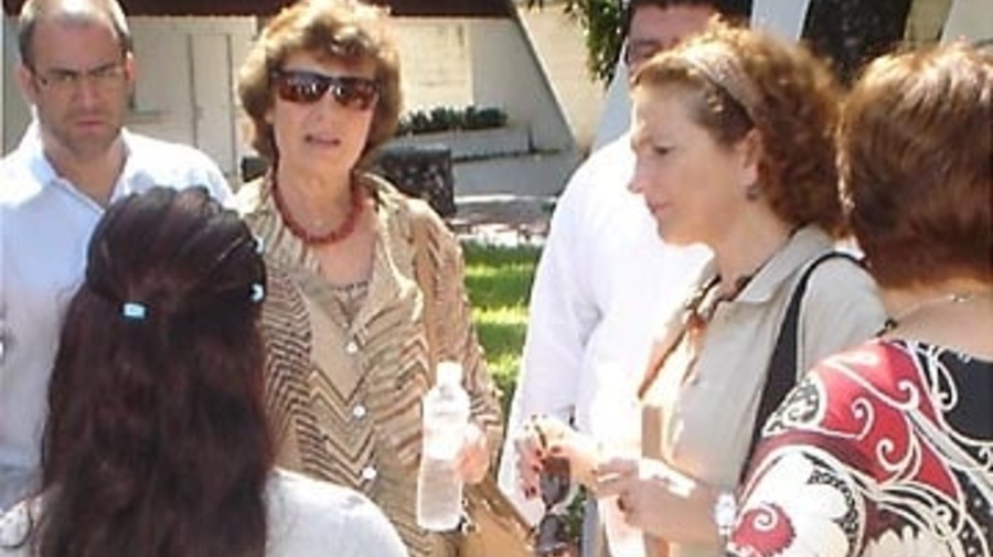 UN Assistant High Commissioner for Refugees Erika Feller (with sunglasses) meets an unaccompanied child in Tapachula, southern Mexico.