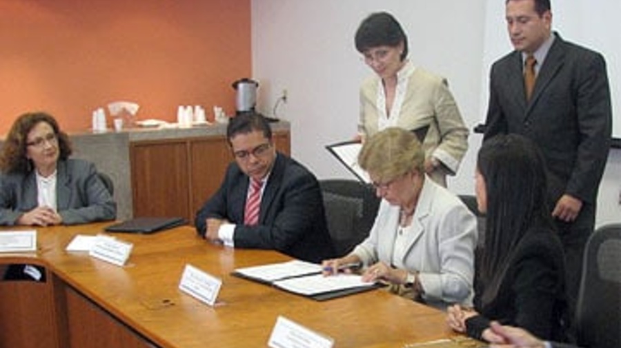 UNHCR's Mérida Morales-O'Donnell signs the Letter of Understanding aimed at facilitating the integration in the State of Mexico of urban refugees.