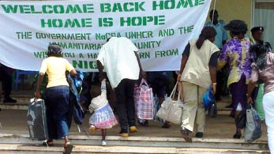 "It is wonderful to be home," wept Fatmata, carrying her baby and dragging her enormous bag off the plane. She was among the several thousand refugees who fled to Nigeria in 1997, when civil war was raging in Sierra Leone.